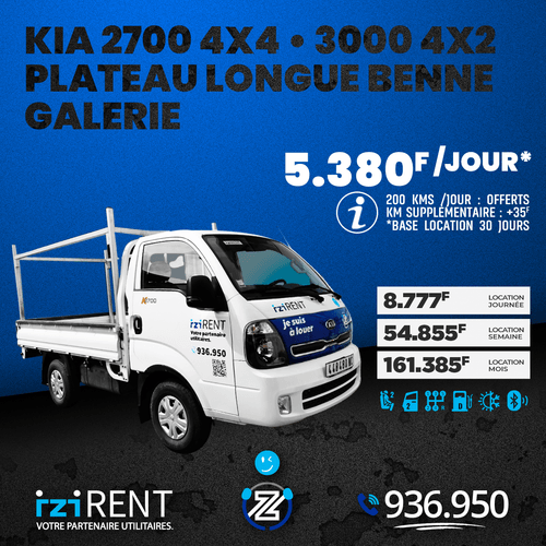 KIA 2700 4X4 / 3000 4X2 - PLATEAU LONGUE BENNE - GALERIE